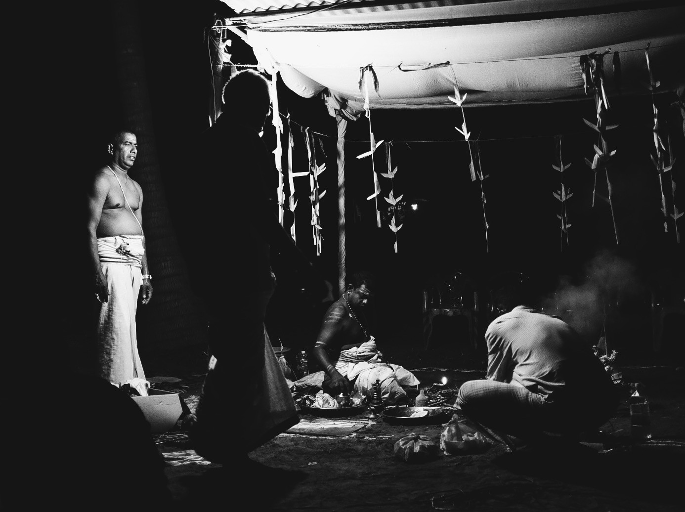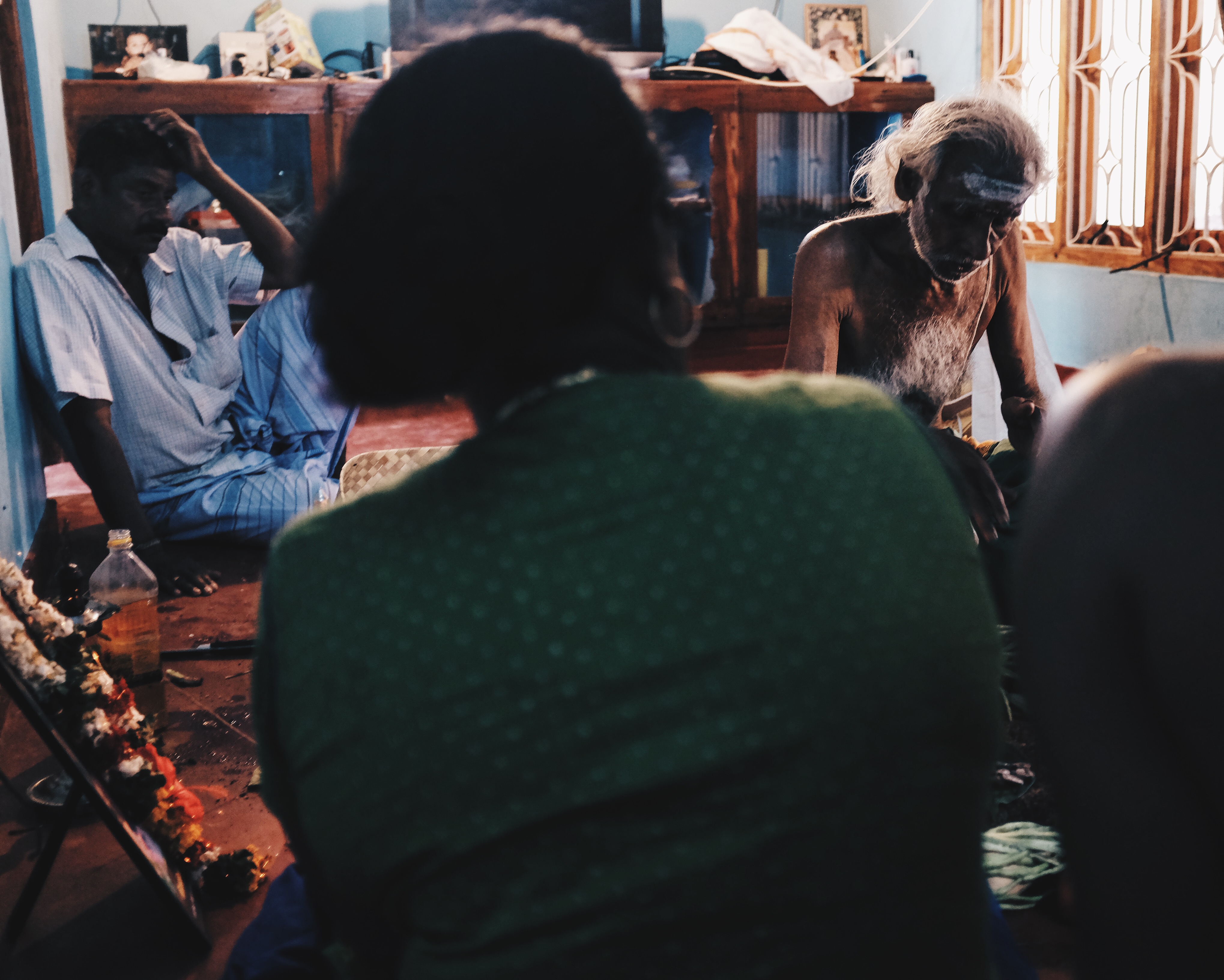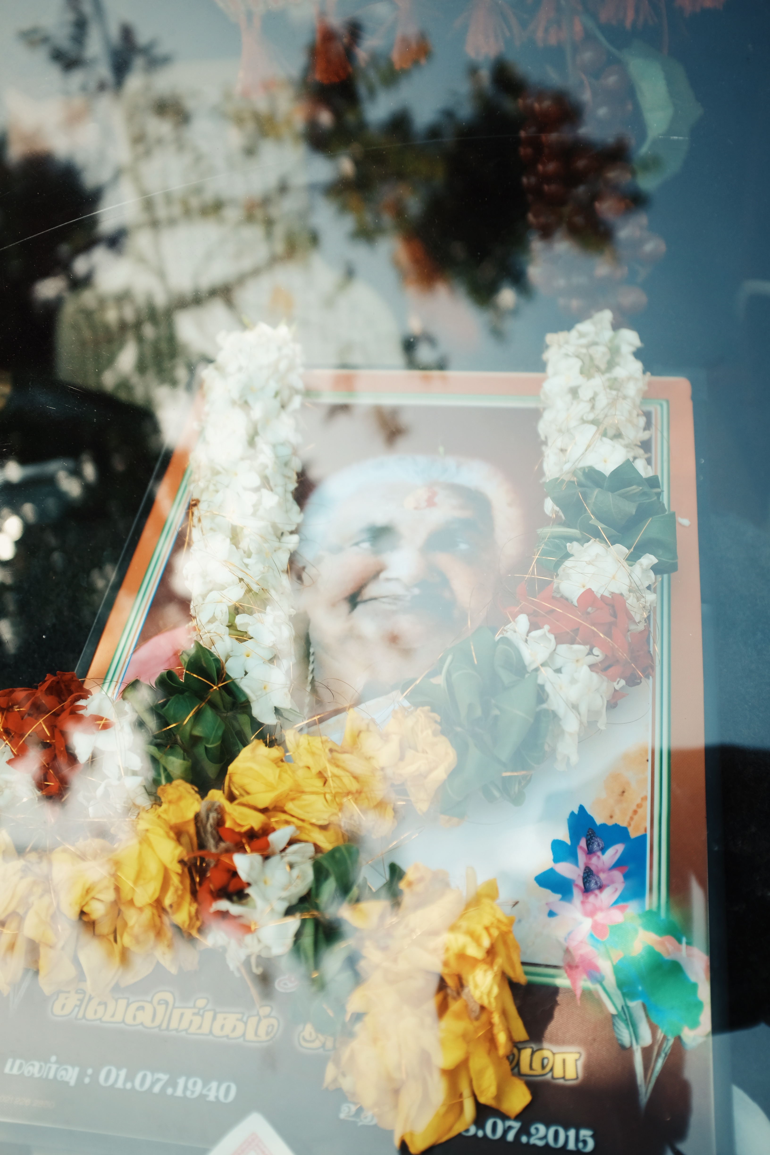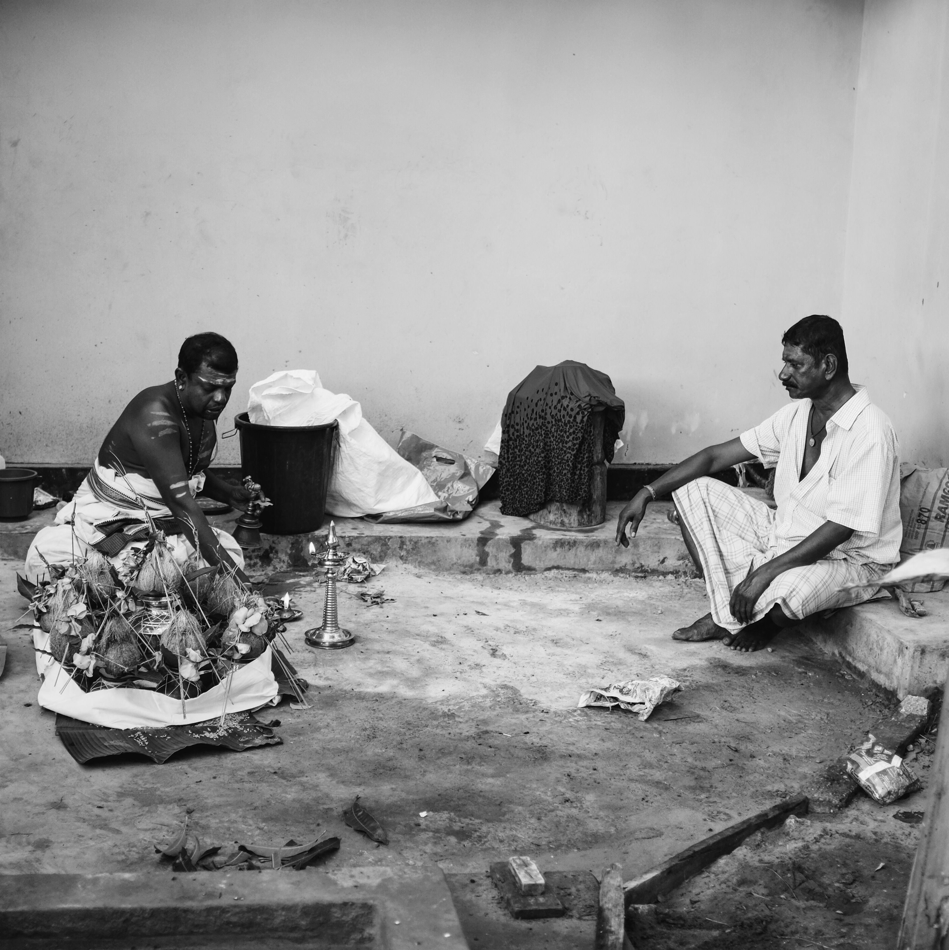 In this project I documented the antyesti “last sacrifice” funeral rite of my grandmother in 2015. Here you can see the early morning poosai one month after her cremation and few hours before the ashes will get thrown into the sea.