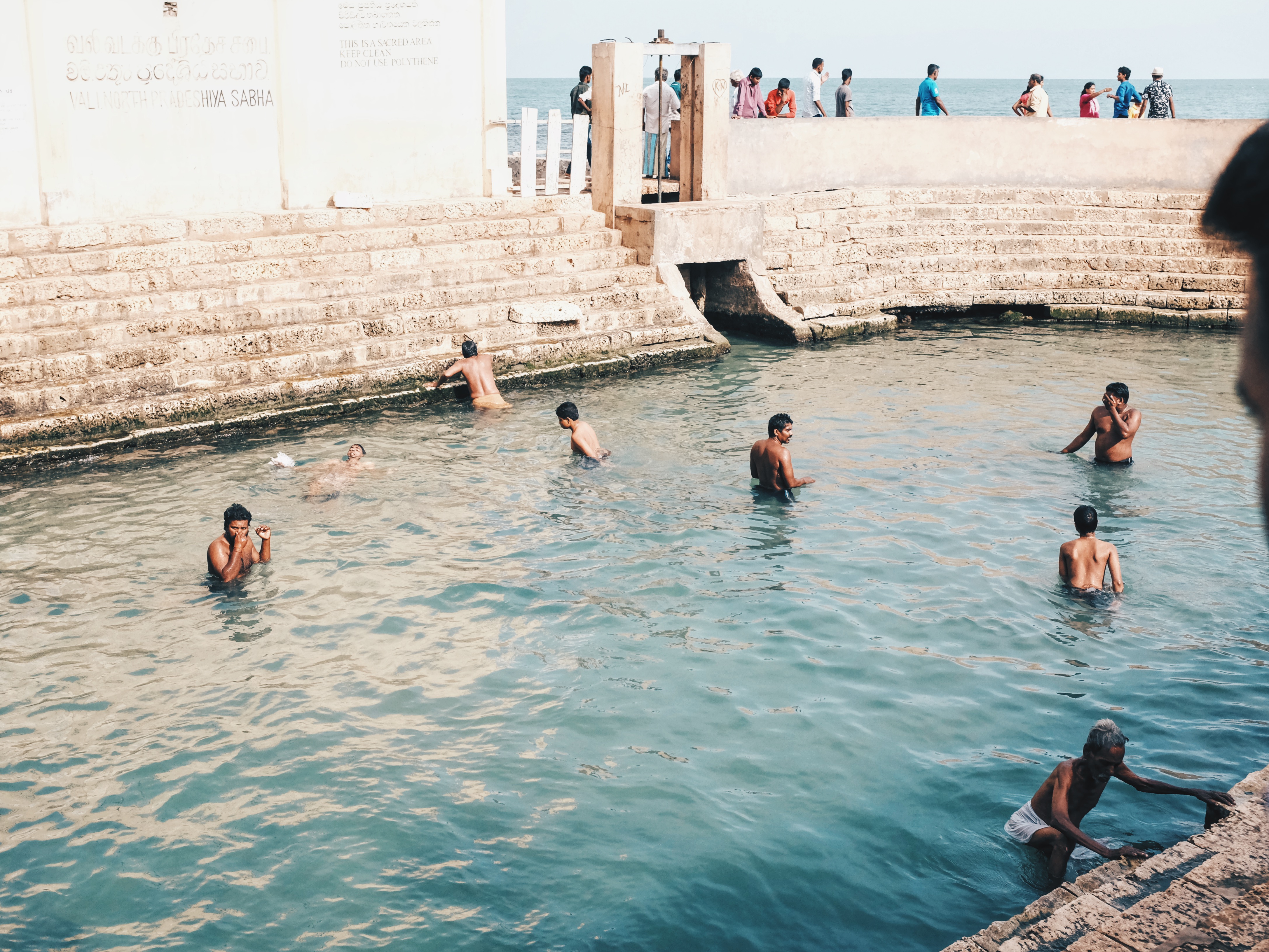 afterwards everyone bathes in the mineral water spring in Keerimalai. The womens bathing area is on the other side.