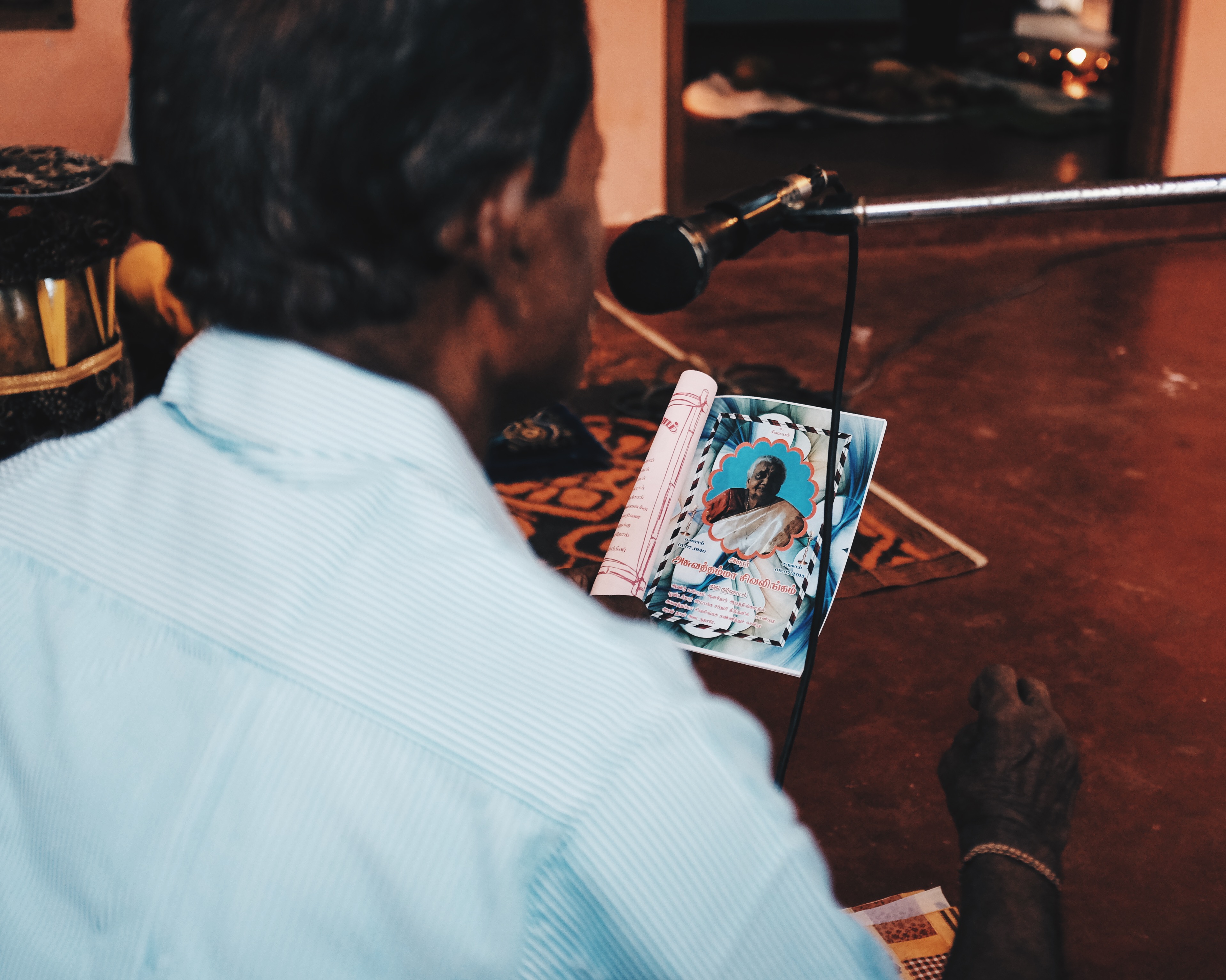 the funeral singer is reciting thevarams and letters from the family to our grandmother. The whole neighbourhood can hear his voice through big speakers. A copy of that booklet is given to everyone attending.