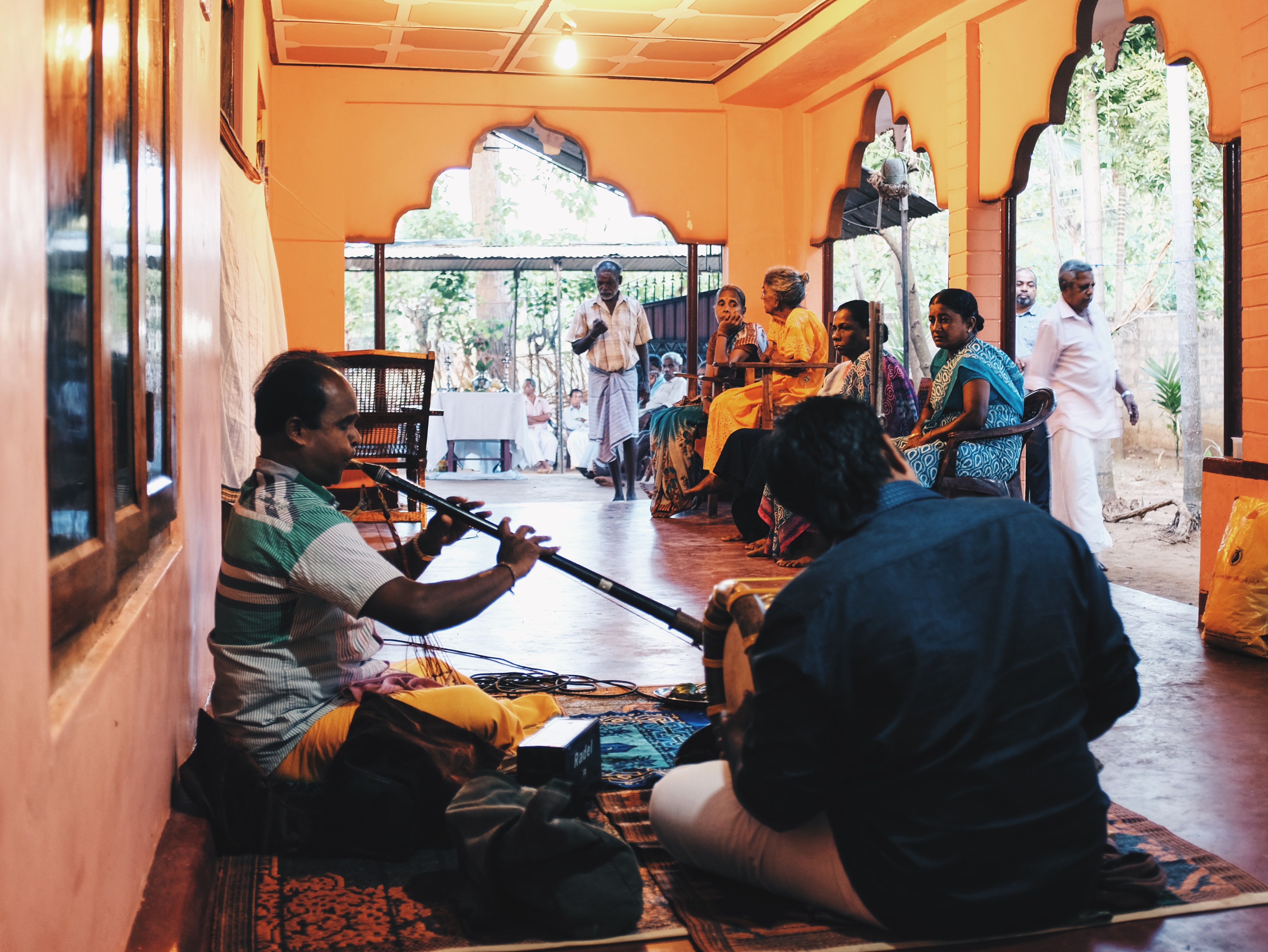carnatic musicians are also present during the whole ceremony. A funeral singer recites some tevarams and letters from the family members printed in a booklet that is handed out to everyone.